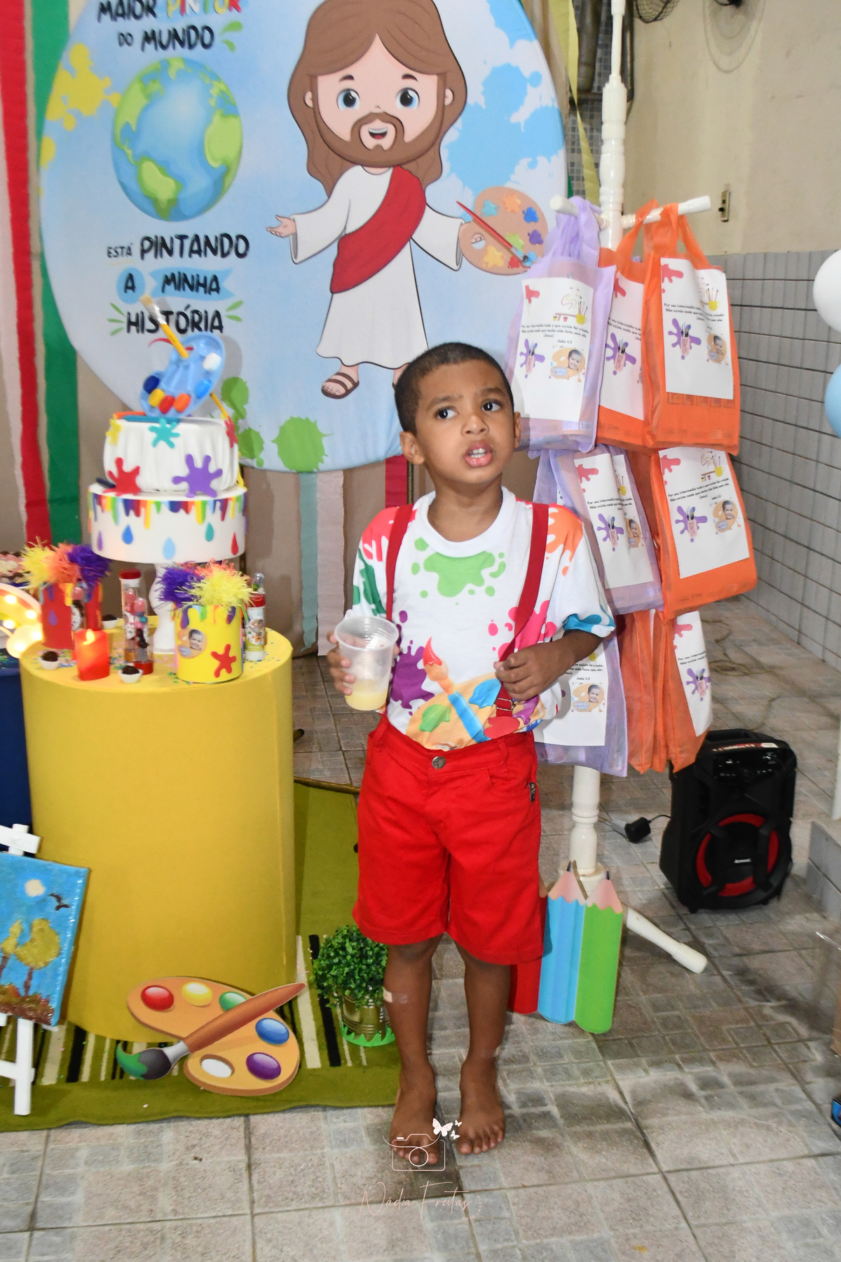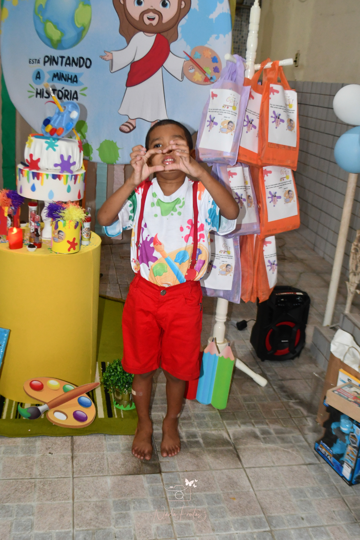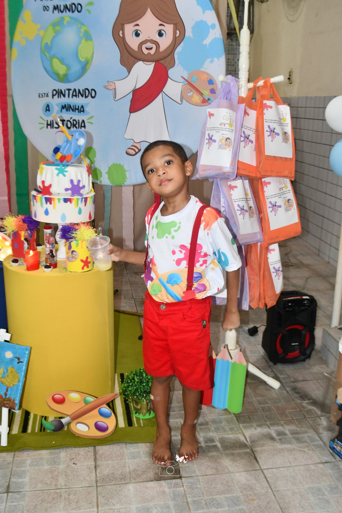 O tema da sua festa foi "O maior pinto do mundo", que combina bastante com o aniversariante que ama artes, e principalmente, ama Deus!