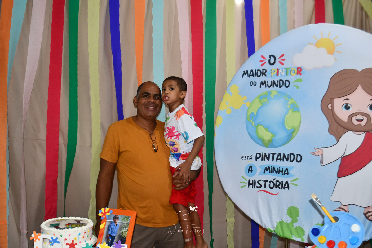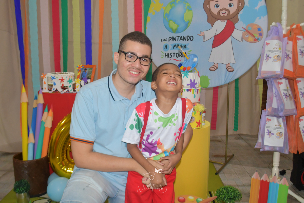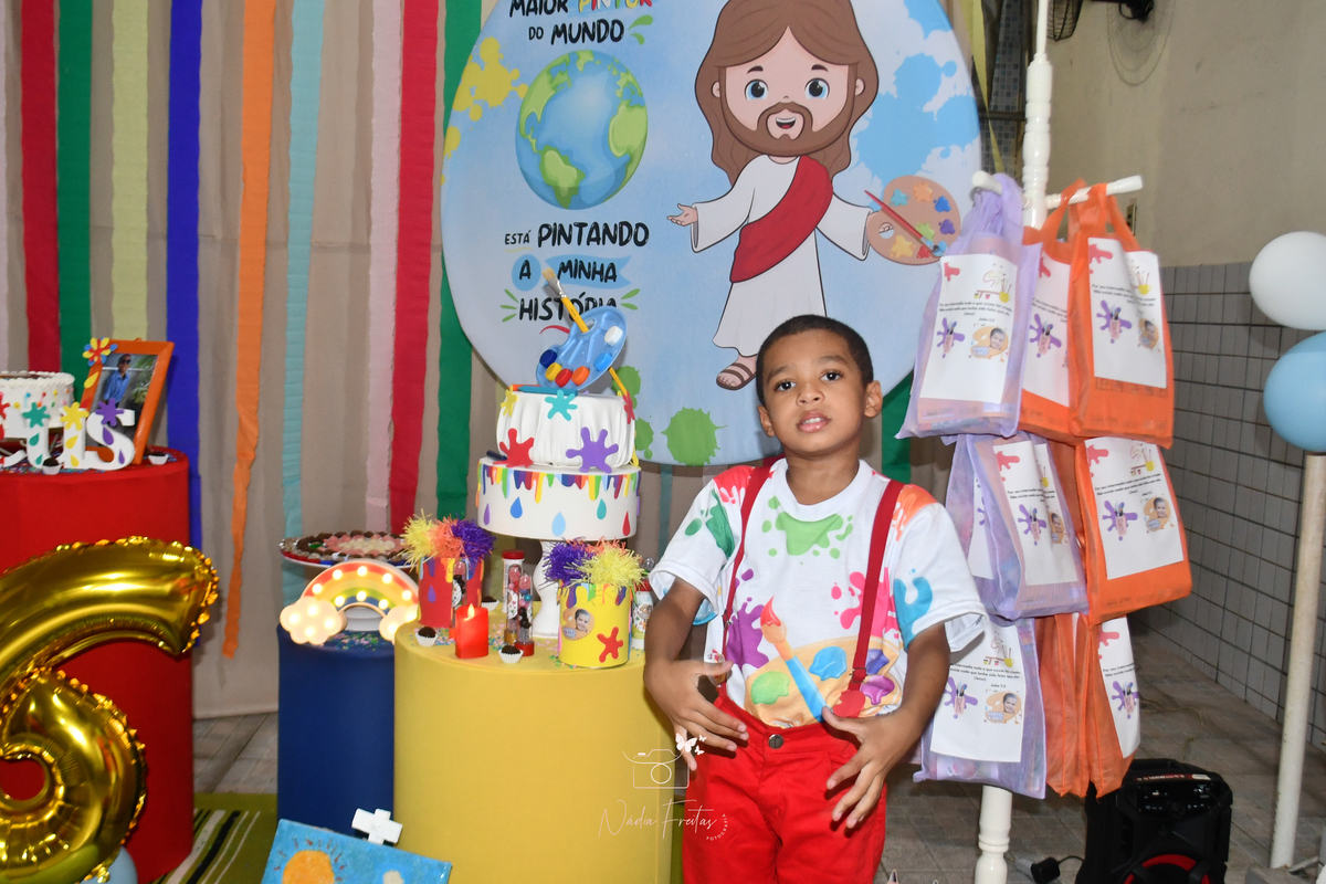 O tema da sua festa foi "O maior pinto do mundo", que combina bastante com o aniversariante que ama artes, e principalmente, ama Deus!